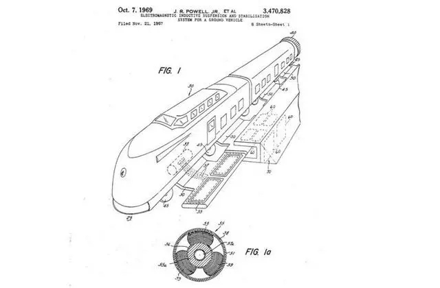 Laithwaite的工作受到了广泛研究,1967年,布鲁克黑文国家实验室的James Powell和Gordon Danby拿到了磁悬浮列车的第一份专利。他们的设计是想利用超导电磁铁来产生“悬浮力,让列车漂浮在地面上,”并且用“推进器、气流或者火箭”获得推力。