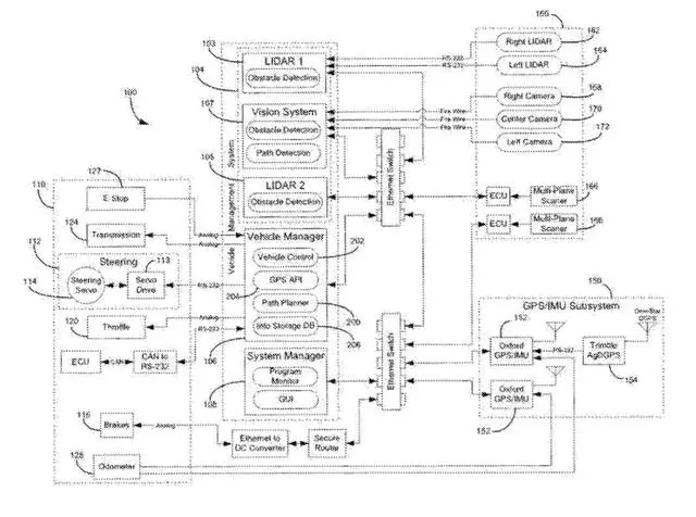 无人车技术的相关专利现在已经好几百项了,但突破障碍的是一家叫做VisLab的意大利机器视觉公司。2013年7月,VisLab的汽车BRAiVE成功地在意大利帕尔马市中心有双向车道的街道、人行横道、交通灯、环岛等障碍的环境下实现自动驾驶。该公司获得的无人车技术第一项专利是由摄像头和传感器系统获取车辆周围环境信息,然后输入命令给计算机。